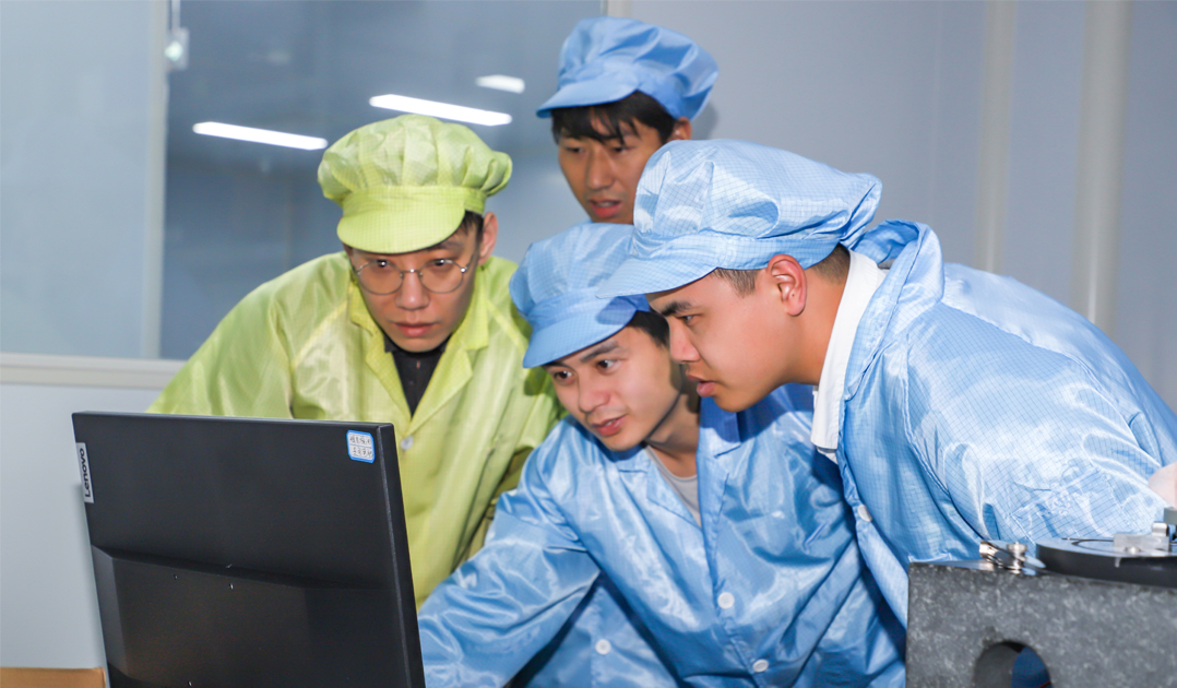 Standardization workshop was built in April 2022, covering an area of about 1,000 square meters. At present, it has automatic production lines of angular time-grating displacement sensor and linear time-grating displacement sensor, equipped with precision test air float table, high-precision automatic measuring microscope, automatic image measuring instrument, cylindricity meter, high-precision coordinate measuring instrument and other instruments and equipment. With mass product assembling, glue curing, precision testing, and product stability testing under different working conditions, the annual output of 40,000 sets, to meet the production needs of different series and models of nanometer time-grating displacement sensors.